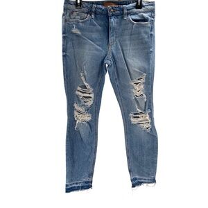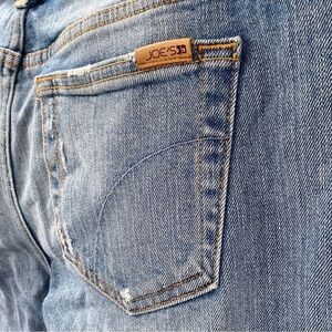 Joe’s jeans, collectors edition, the icon, ankle, mid rise, skinny ankle, distressed, raw hem, zipper and button closure.