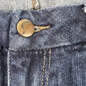 Women's dark wash blue denim jeans by Joe's Jeans. Classic five pocket style, factory whiskering & light fading, button and zipper closure, embroidery detail on back pockets. Just a good looking pair of jeans.  Please refer to measurements. Due to light & screen variations, colors may vary slightly from the images