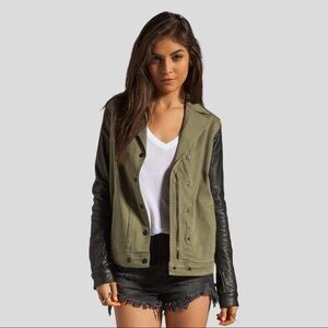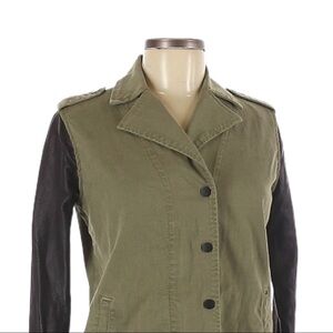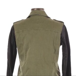 Joe’s Jeans Easy Rider Army Green Moto Jacket XS Leather Sleeves Celebrity Style