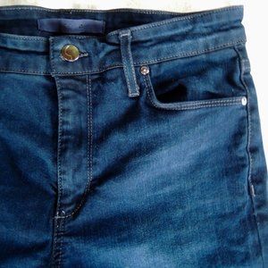 Joe's Jeans Elaine High Rise Skinny dark wash ankle jeans, size 28. Dark indigo jeans, soft, stretchy and comfortable, 5-pocket style. Light whiskering and faint lightening of fabric at upper thigh area (pics), making them nicely broken in but still in excellent pre-owned condition.