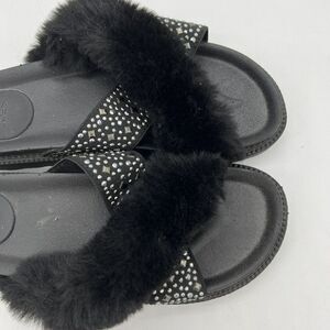 Joes Jeans Faux Fur Platform Slides Sandals Womens Black Studs Size 9