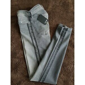 Joe's Jeans Flawless High Rise Skinny Ankle Black Distress W/ Dark Stripe Sz 23