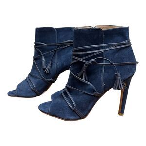 Joe’s Jeans Halsey Blue Suede Peep Toe Lace-up Stiletto Tassel Ankle Booties 8