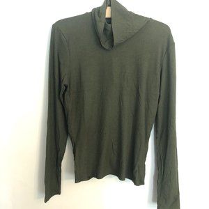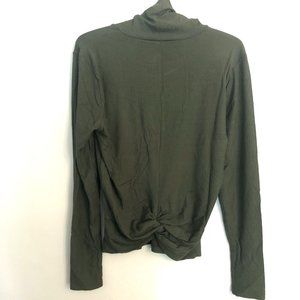 Soft + silky fine rib knit long sleeve turtleneck top with twist detailing at the back. Beautiful forest green color. Close-to-the-body / fitted style. 90% rayon/ 10% spandex. NWT.