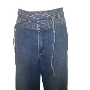 Joe's Jeans High Rise Belted Wide Leg Flare Jeans Size 27 Medium Wash