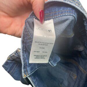 Elevate your denim style with these Joe's Jeans belted wide leg jeans. Featuring a flattering high rise, wide leg flare silhouette, and a built-in belt, these jeans combine comfort and chic. Size 27. Excellent used condition with minor fraying at the hems. Perfect for casual street style or dressing up with heels.