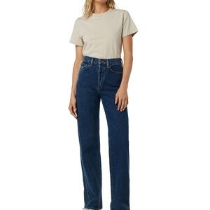 We Wore What Joe's Danielle Jeans Vintage Straight Acid Wash Flattering High Rise Exposed Button Fly 5 Pocket Design Slight Factory Distressing 80's Throwback Streetwear Soft Non Stretch Denim Tapered Mom Jeans