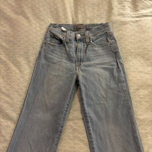 Great condition! High waist flare jeans from Joe's Jeans. Very pale blue wash ("corinne"). Some possible discoloration on thigh (see fifth picture), but I've never noticed when wearing. Super stretchy, flattering, and comfortable - only selling because they no longer fit!
