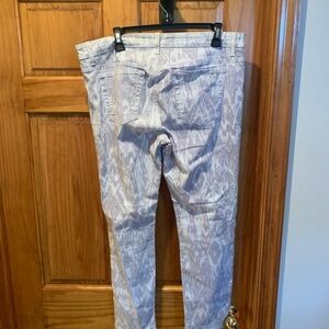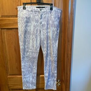 Joe's Jeans High Water in Iris Aztec Ethnic Print. Zip and button closure. Women's size 32. Small stain and some discoloration along the hem.
