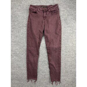 Joe's Jeans Womens 27 Burgundy Icon Mid Rise Skinny Ankle Frayed Hem Stretch Denim