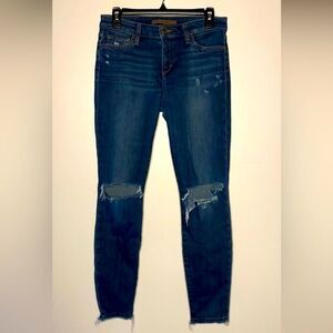 Joe's Jeans- “Joyce” Skinny Ankle Distressed Raw Hem Dark Wash Jeans- Size 27