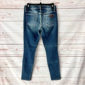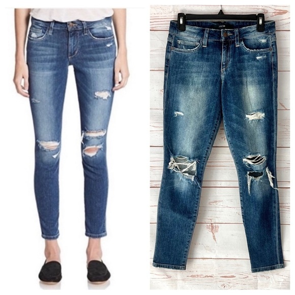 Joe’s Jeans Keagan Super Soft Destroyed Skinny Stretch Jeans. Shredded knee factory distressing. These jeans are so soft they feel like pajamas! Too small for me or I would be keeping them. In great gently used condition. I only wore then a couple times. Size 26