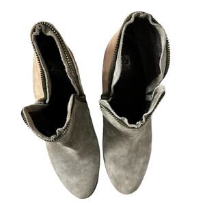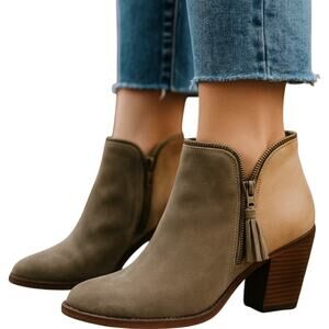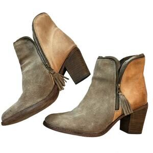 Joe’s Jeans Leather Suede Two Tone Taupe Tan Ankle Boots Size 10 Tasseled Zipper