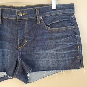 Joe's Jeans Marisela cut off denim shorts, size 32. Raw, frayed hem. Side split hem. Boho. Festival. Shorts zip and have a button fly closure.