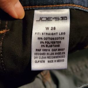 Joe's Jeans - Mid-rise, straight leg in size 28. Darker blue wash. Condition is NWOT. Slightly heavier feel with a nice stretch to them.
