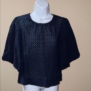 Joe's Jeans Navy Cotton Eyelet 3/4 Puff Sleeve Cropped Top Women’s Size S