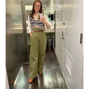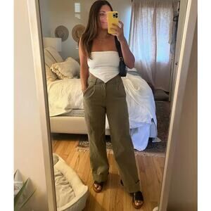 Joe's Jeans Petra Pants Army Green Cargo Side Pockets Wide Leg High Rise Sz 29