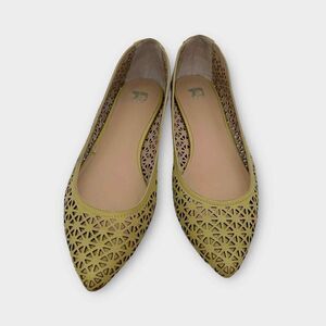 Joe's Jeans Pixie Limyel Flats Sz 8.5 Olive Green Geometric Perforated Summer