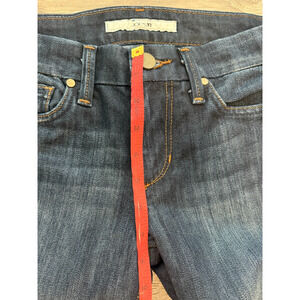 The Joe's Jeans Provocateur Size W 25 Stretch Boot Cut i denim is a stylish and versatile pair of women's jeans. With a mid-rise and bootcut style, these jeans feature a 5-pocket design and a zip closure. Made from a comfortable cotton blend fabric with added stretch, these jeans are perfect for everyday wear and can be easily paired with a variety of outfits. The solid blue color and faded accents add a trendy touch to this classic wardrobe staple from the Joe's Jeans brand.