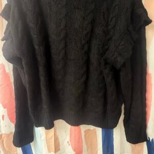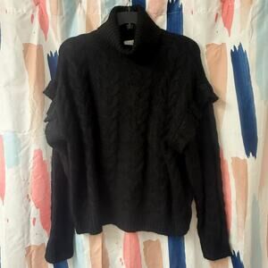 Joe’s Jeans Ruffle Sleeve Cable Knit Turtleneck Sweater in Black Size Large
