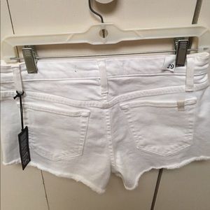 Sexy ultra short white jean shorts w/stretch. Dress up with heels and a jacket or dress down with sandals and a tee-shirt. New w/tags-never worn. Size 29.