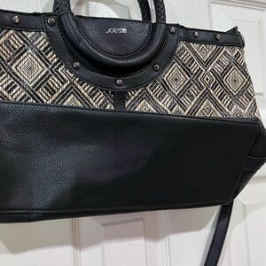 Joes Jeans Shoulder Tote Bag Woven Pattern Purse Black Tan