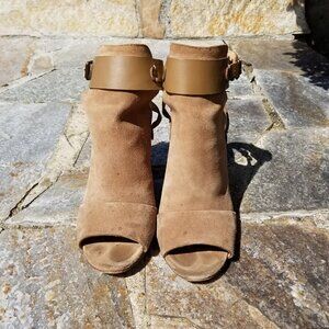 Joe's Jeans Taupe Petra Stone Tan Suede Peep Toe Booties