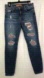 Stylish distressed blue jeans perfect for a casual look. Features unique detailing for added flair.