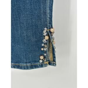 These jeans feature beautiful embellishments with beading and rhinestones, adding a touch of glamour to your denim collection.