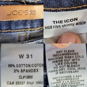 Joe's Jeans The Icon Mid Rise Skinny Ankle Jeans 31 Med Wash Raw Frayed Hem