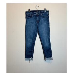 Joe's Jeans The Icon midrise skinny crop blue stretch denim cuffed raw hem Sz 30