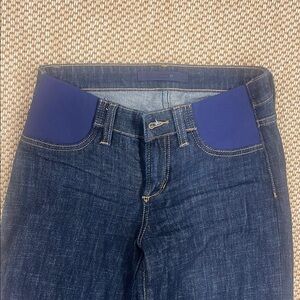 Stylish dark blue flare maternity jeans. Perfect and comfortable for casual outing.