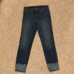 Joe’s Jeans The Smith (mid-rise straight ankle). Funky and unique cuffs! Great, high-quality denim. Size 25. Great condition. Worn less than 5 times. No holes, rips, or stains. Smoke-free home.