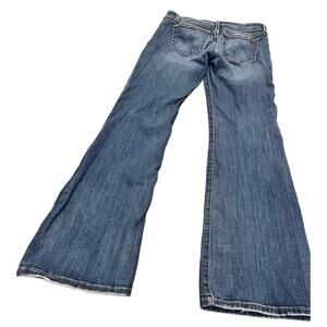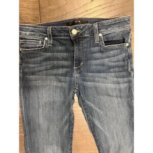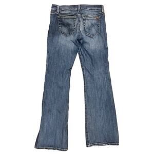 Up for sale is a stylish pair of Joe's Jeans "The Vixen" flared jeans in a classic medium-blue wash. These jeans feature a flattering fit that is slim through the thigh and flares out starting at the knee, giving a chic, vintage-inspired silhouette.