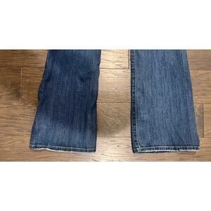 These jeans are in excellent pre-owned condition. They show minimal signs of wear and have no major flaws, rips, or stains. The hems are intact and show light wear consistent with normal use. Please review all photos for the best representation of the item's condition.