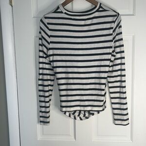 Stylish Joie blouse with black and white stripes. Long sleeves and elegant twist detail.