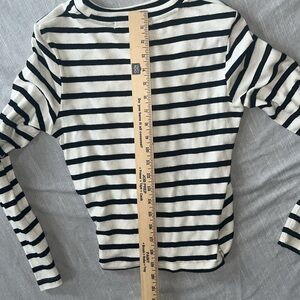 Stylish Joie blouse with black and white stripes. Long sleeves and elegant twist detail.