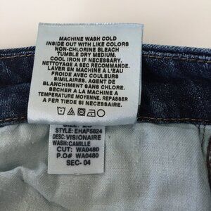 Materials: 90% Cotton, 10% Elastane- Machine wash- Dry Clean Recommended. Some overall fading. Scratch/pull on middle of backside, right front leg at bottom. Still tons of wear left- really soft comfy denim!"
