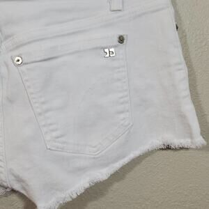 Keywords: Joe's Jeans, white denim shorts, frayed hem, casual shorts, summer shorts, denim shorts, women's shorts, trendy shorts, size 26, five pocket, white shorts, short shorts, jean shorts