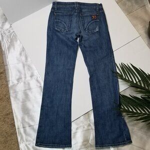 Joe's Jeans premium designer denim jeans in the Provocateur Wide Leg style. Dark blue denim wash called Hale. Mid rise.