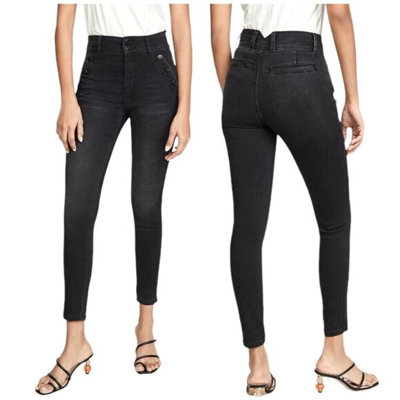 Joe's Jeans Women 32 Black Faded High Rise Button Detail The Georgia Skinny