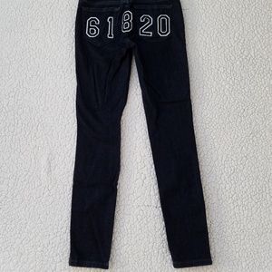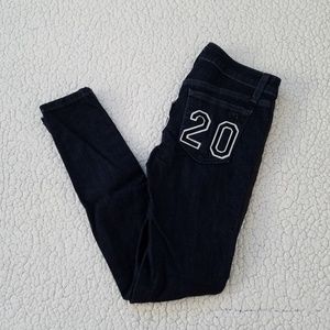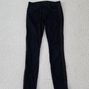 Blue skinny Joe's Alexa jeans, faux leather panel on sides, number graphics on back, in excellent condition. Cotton/elastane fabric. Women's size 25.