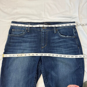 Joe's Jeans Womens straight skinny Ankle Jeans Dark Wash blue Denim with light fading & distressing.