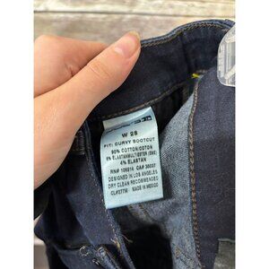 Stylish boot cut jeans. Dark blue color. Perfect for any occasion.