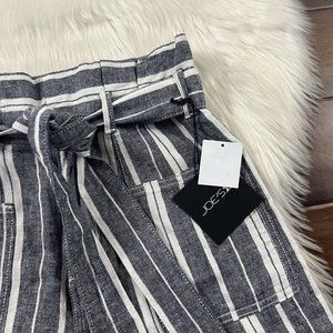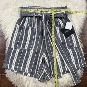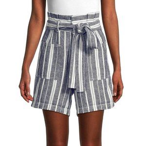 Joe's Jeans Women's Size 25 Navy Blue and Off White Beach Stripe Paperbag Shorts, Belt Tie Waist, No Stretch, Pockets, Clasp Closure with Zipper Fly, 55% Linen 45% Cotton