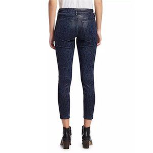 Tonal python print jean captures an on trend look with a high rise and cropped skinny leg.