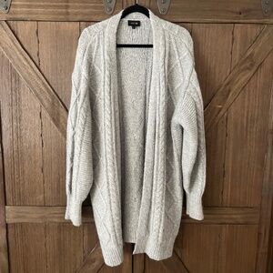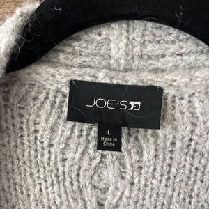 Joe's Jeans Wool Blend Open Front Cable Knit Pocket Cardigan Sweater Gray Size L