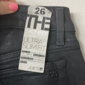 Joes Jeans the skinny ankle ultra slim fit . Size 26. Coated black. NWT. Inseam is 26.5” and rise is 9”. Laying flat waist is 14. Zipper pockets on the front.