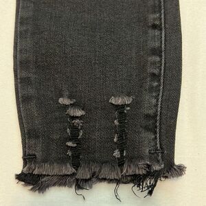 * Style: Ankle cut jeans with raw edge hemline.