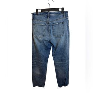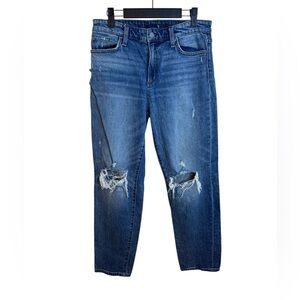 Pre owned excellent condition worn once. Adorable medium wash mid rise distressed boyfriend fit jeans. So cute and great for all seasons. WOMENS size 28.